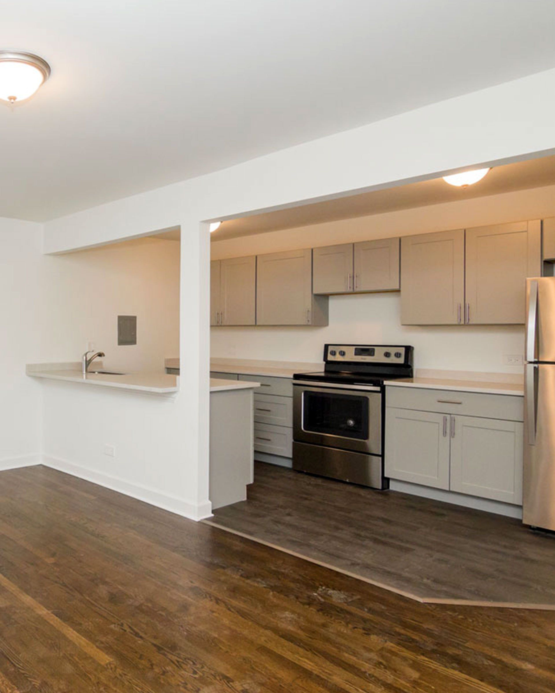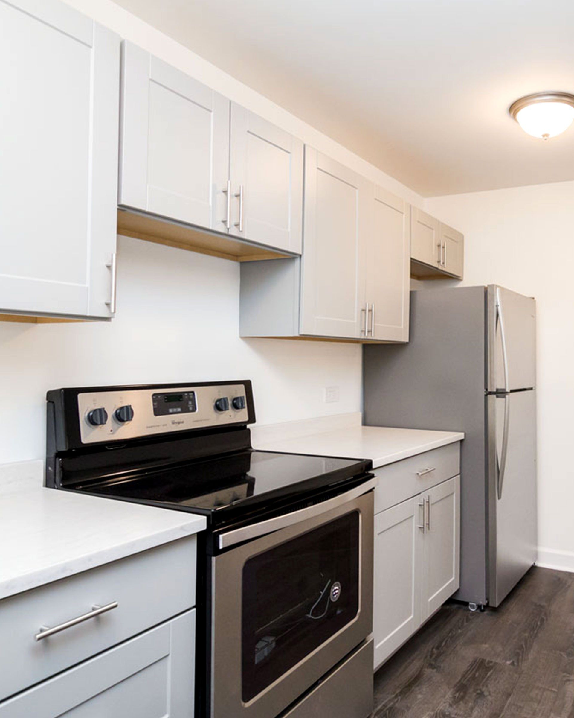 Fairchild Acquisition implemented a new strategy with Winthrop, that resulted in a 10% cost savings and five-month time savings. We emptied out and renovated one building at a time versus one or two stacks, this allowed up front bulk purchasing of all materials as well as maximizing control of all manpower. The scope of work included new building electrical, plumbing, mechanicals, a new laundry/fitness facility, as well as hallway and lobby modernization. The unit rehab will include a new kitchens and baths as well as a priority and creating new open kitchen floor plans while maximize natural light by installing oversized windows (see picture).